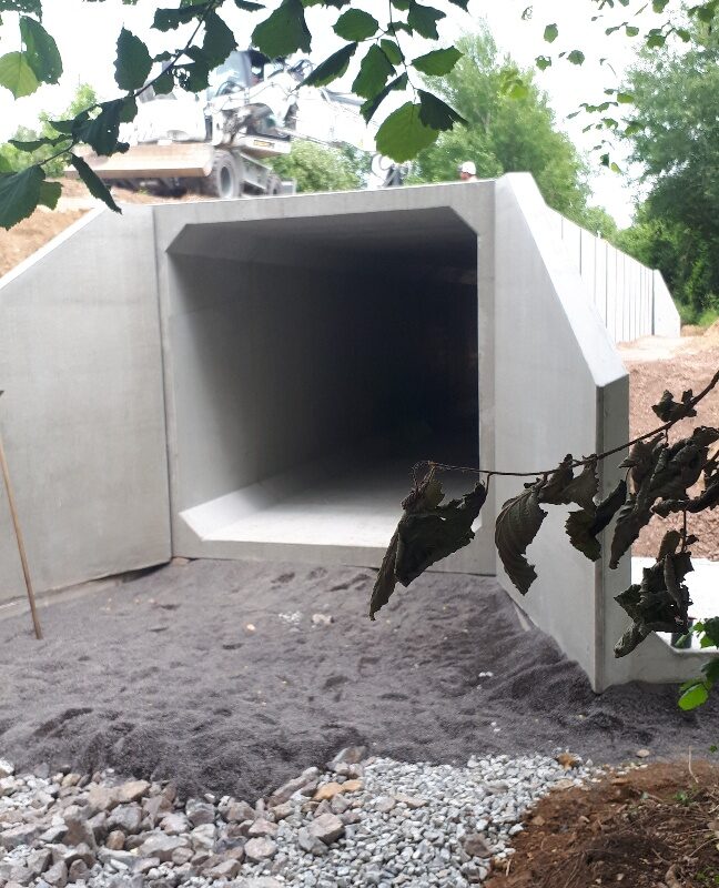 Il s’agit d’un ouvrage piéton et de passage d’engins agricoles au gabarit bien particulier puisqu’il est plus haut que large.