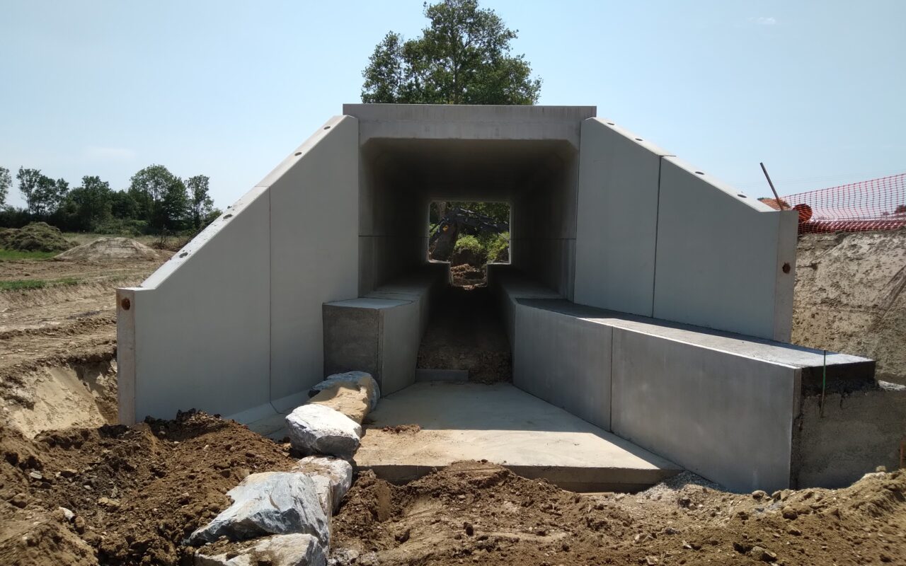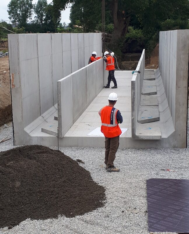 Cette conception a de plus permis une pose à ciel ouvert des équipements de passage de faune ainsi que la reconstitution du lit de la rivière sur 30cm en vue de sa restitution.