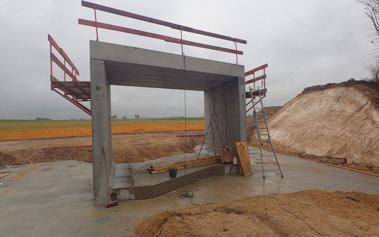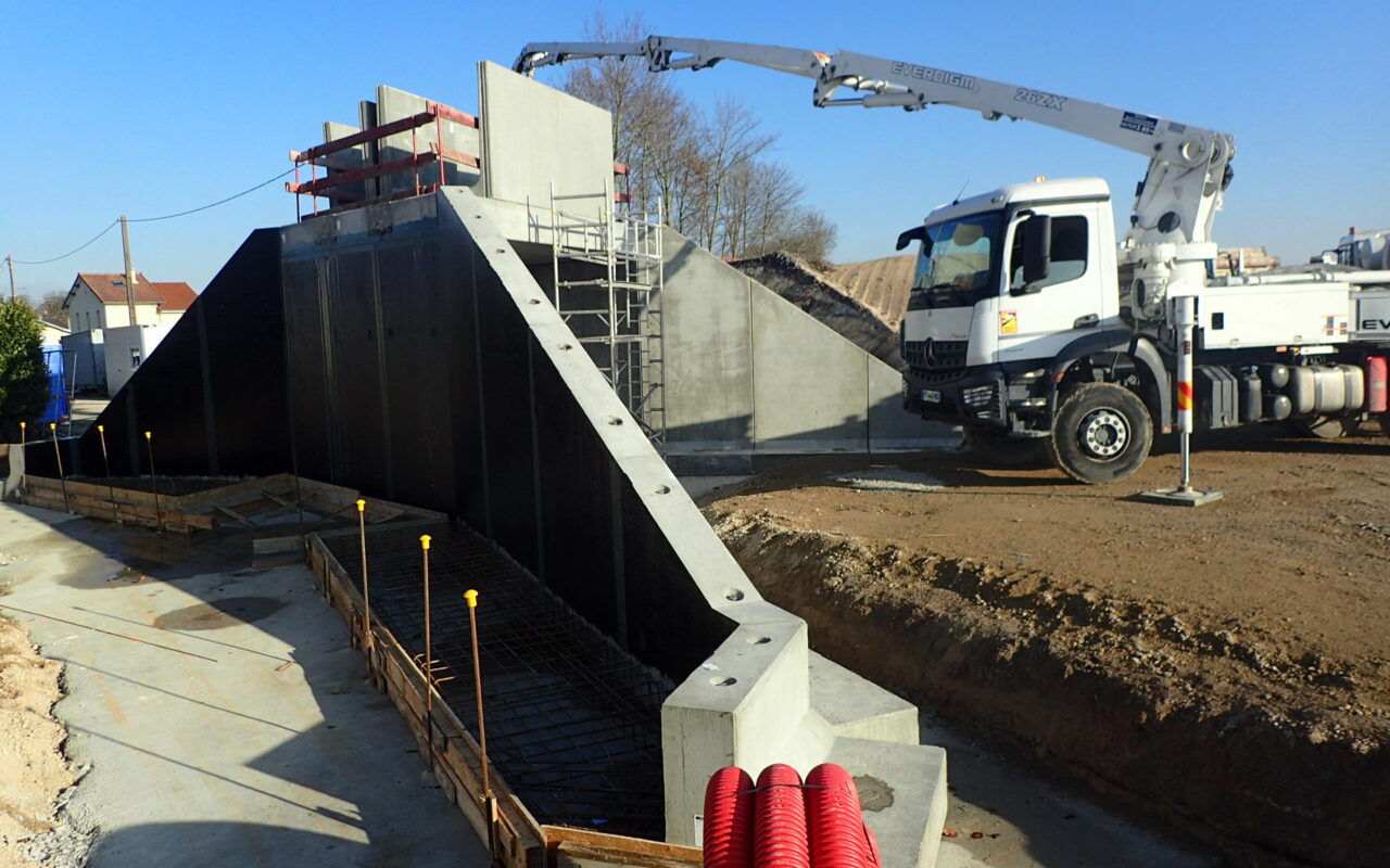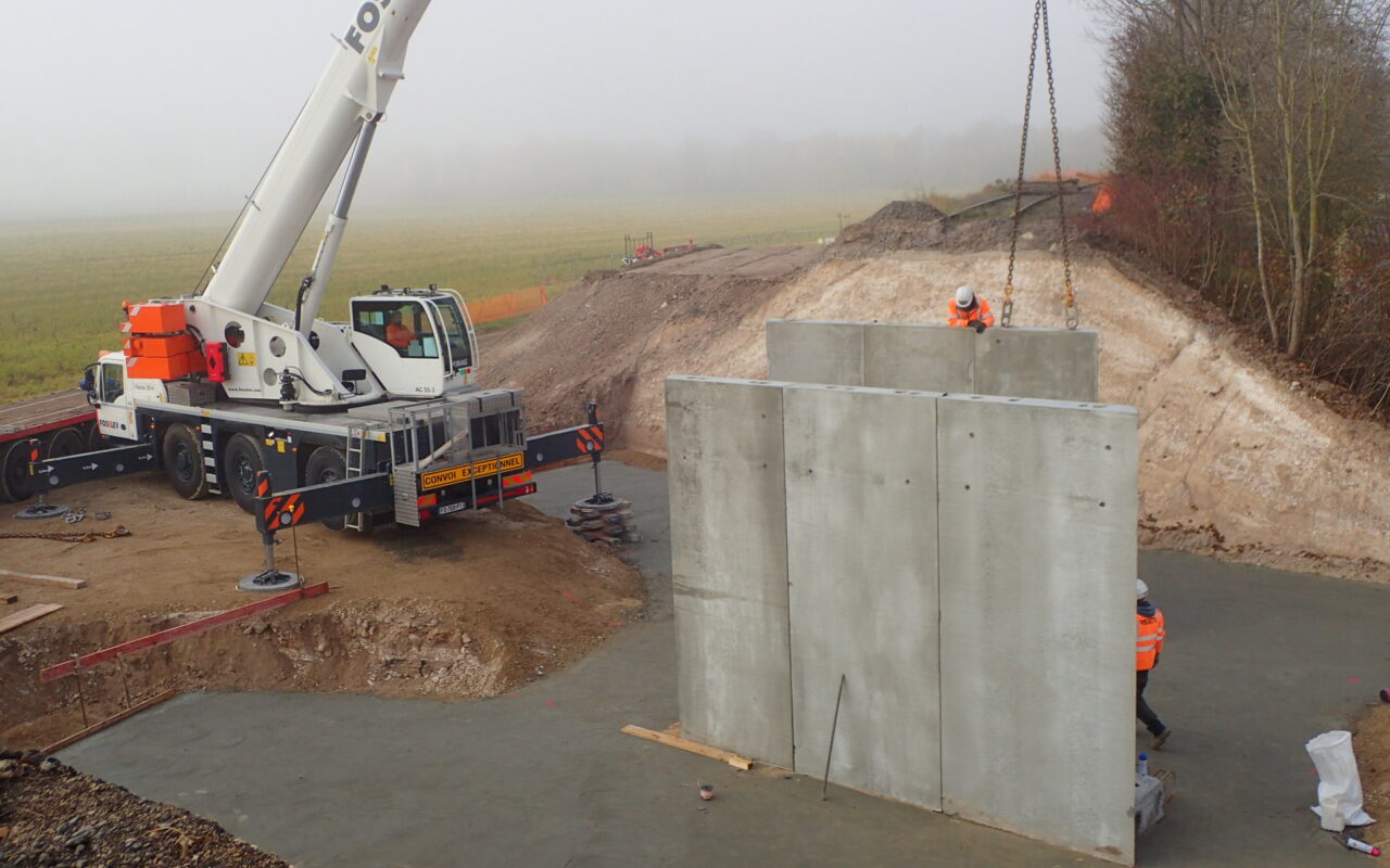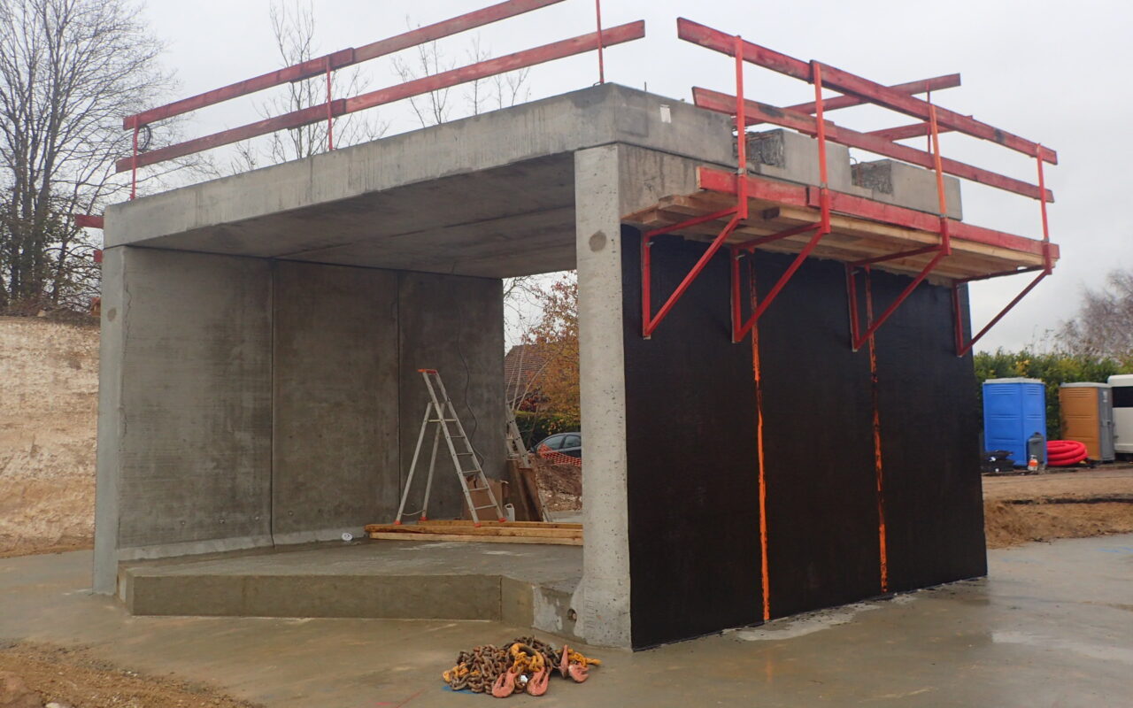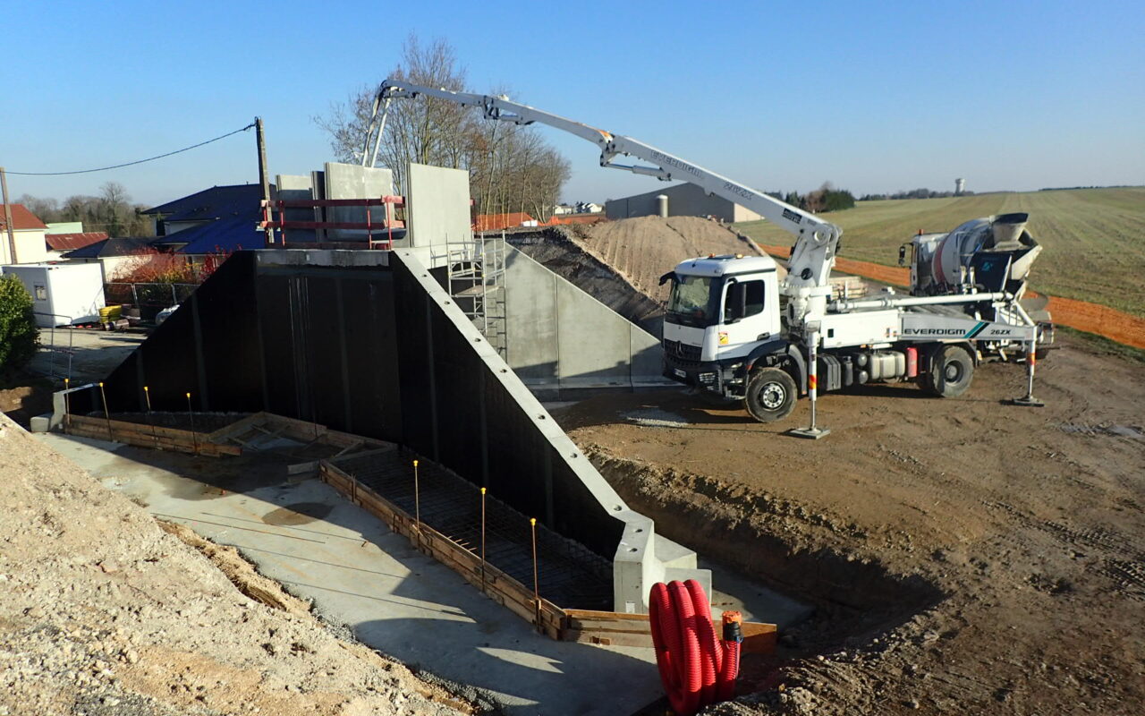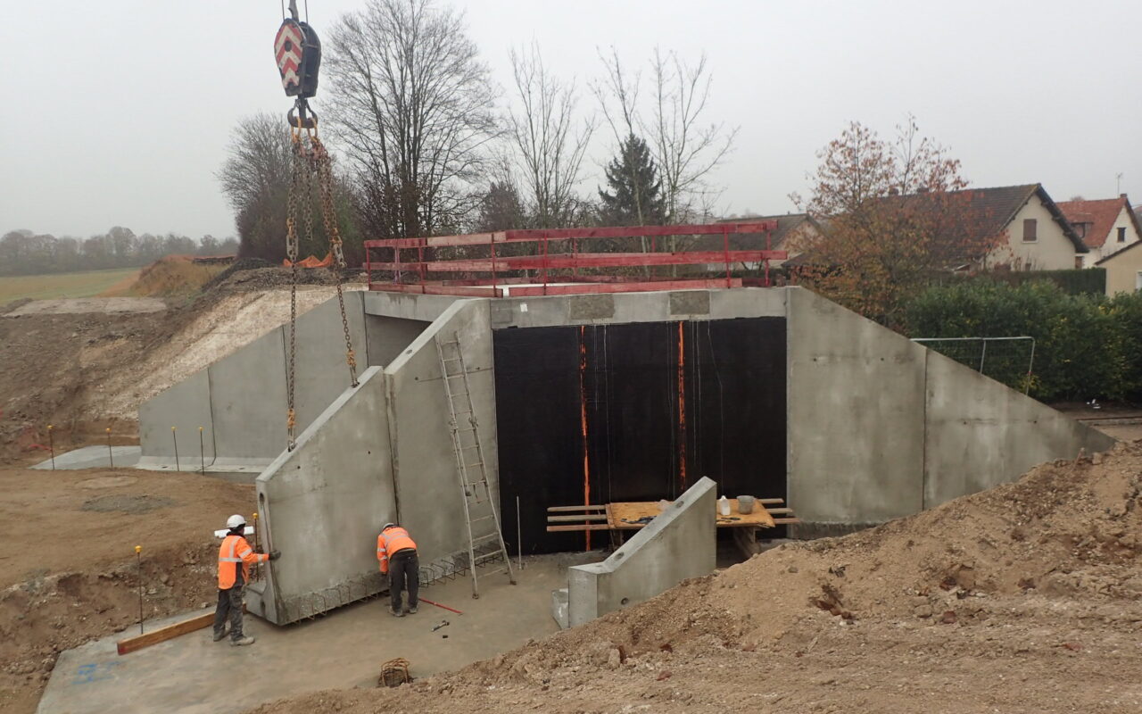 Le BE Chapsol a conçu cet ouvrage de section biaise intérieure 5.72 m x 3.55 m de type U + dalle pour l’ESID de Metz (établissements du service d’infrastructure de la Défense).