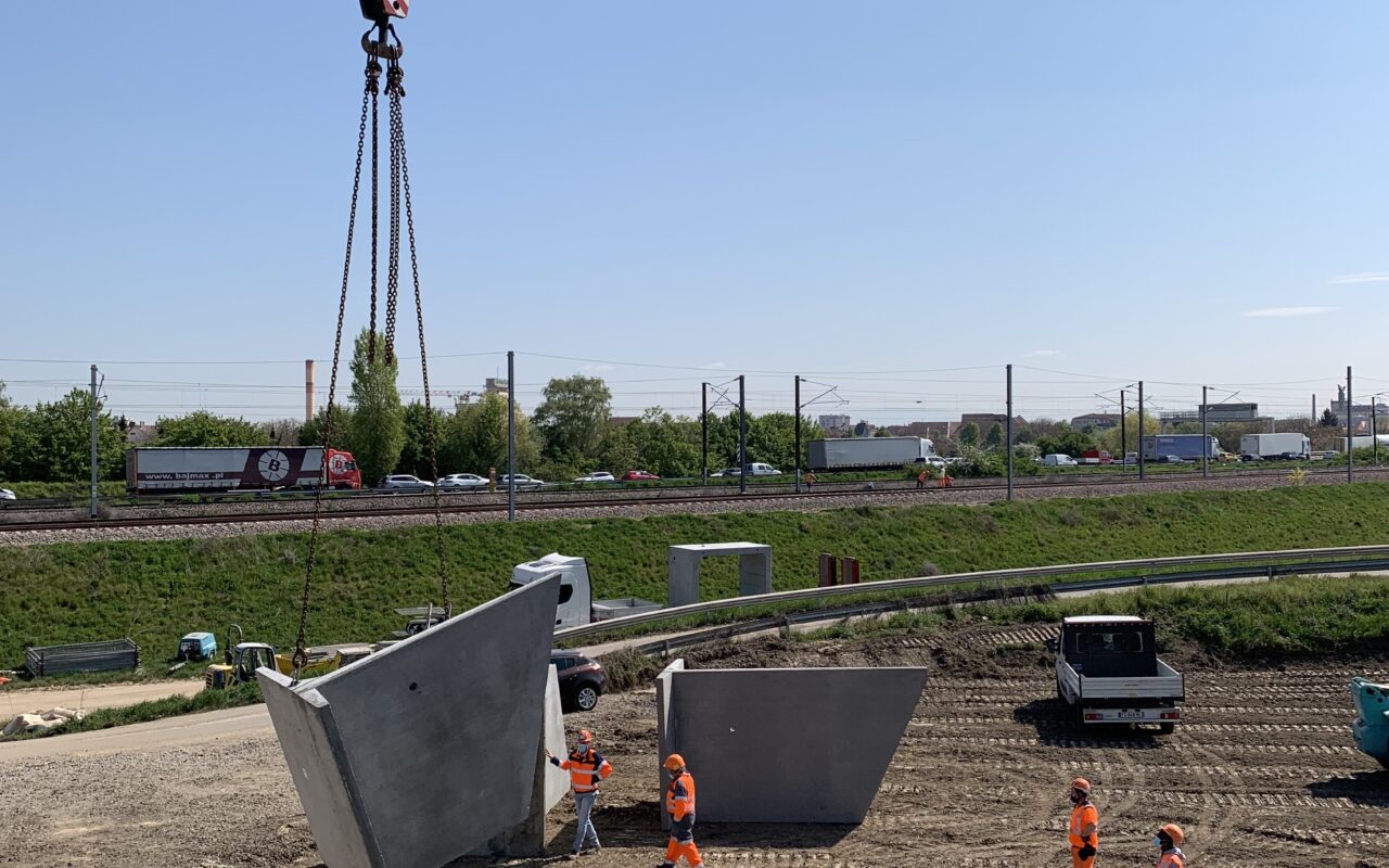 La livraison s’est effectuée dans un créneau très serré, les camions devant traverser les voies SNCF pour accéder au chantier et la mise en oeuvre de l’ensemble des pièces préfabriquée a été réalisée en moins de deux jours.
